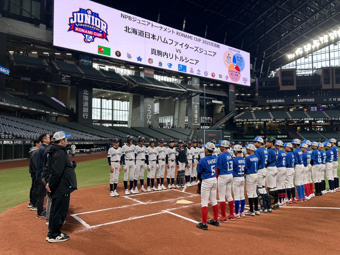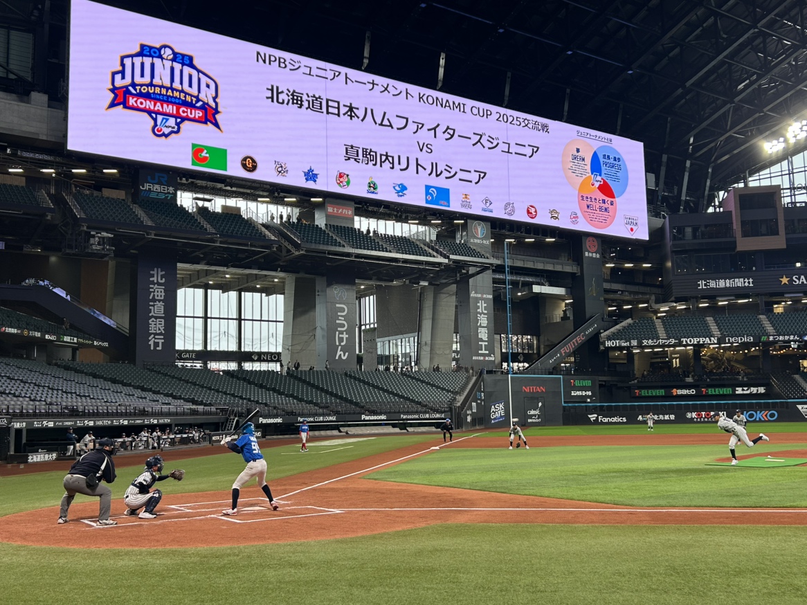 エスコンフィールドで真駒内リトルシニア(1年生)と交流試合を行いました。