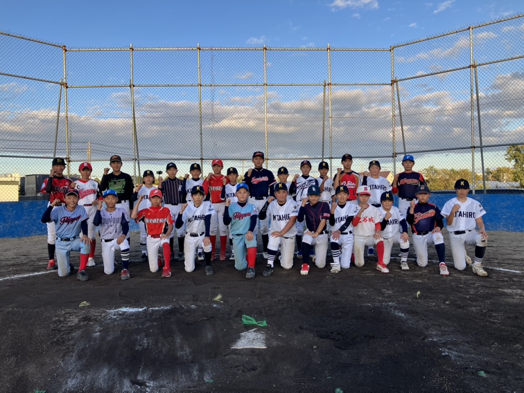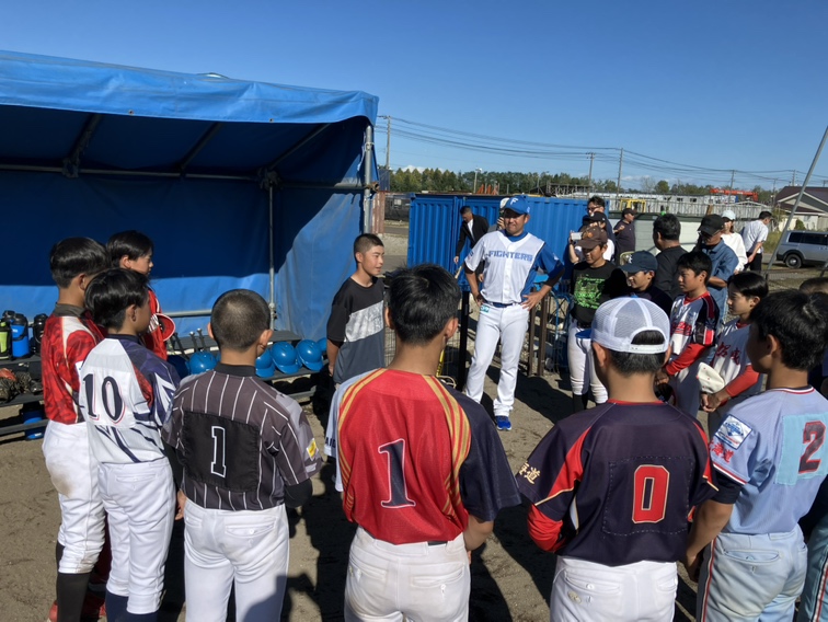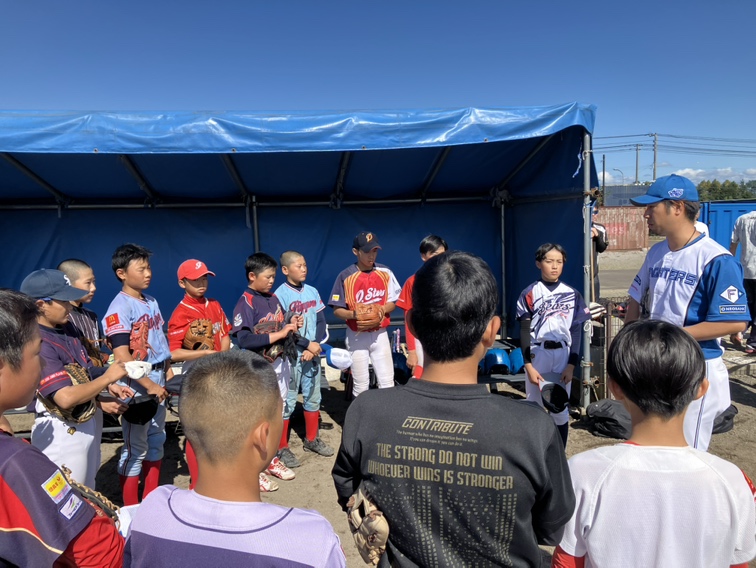 試合後には、相手チームと激励を行い、ファイターズジュニアOBからも激励をもらいました。