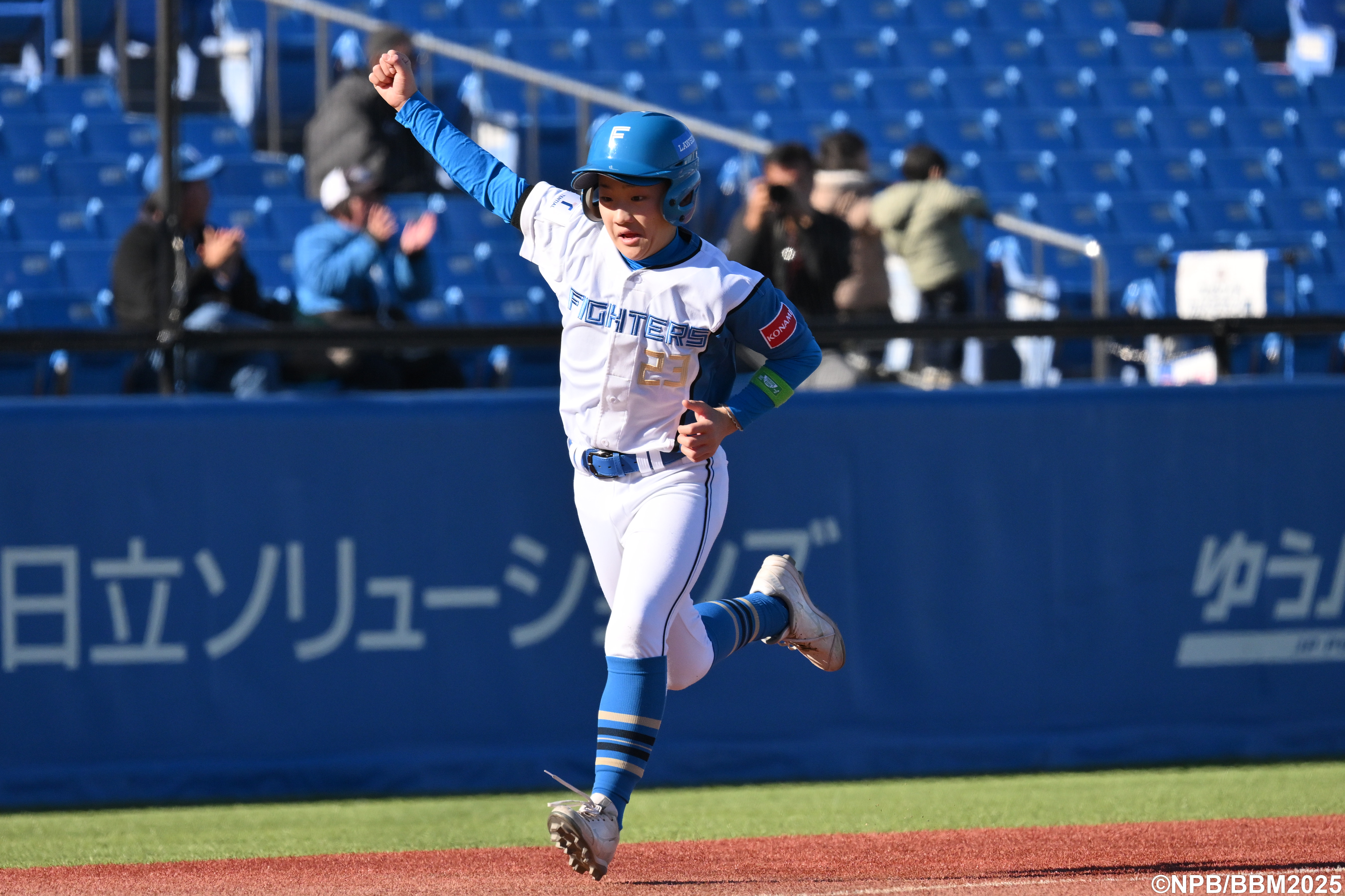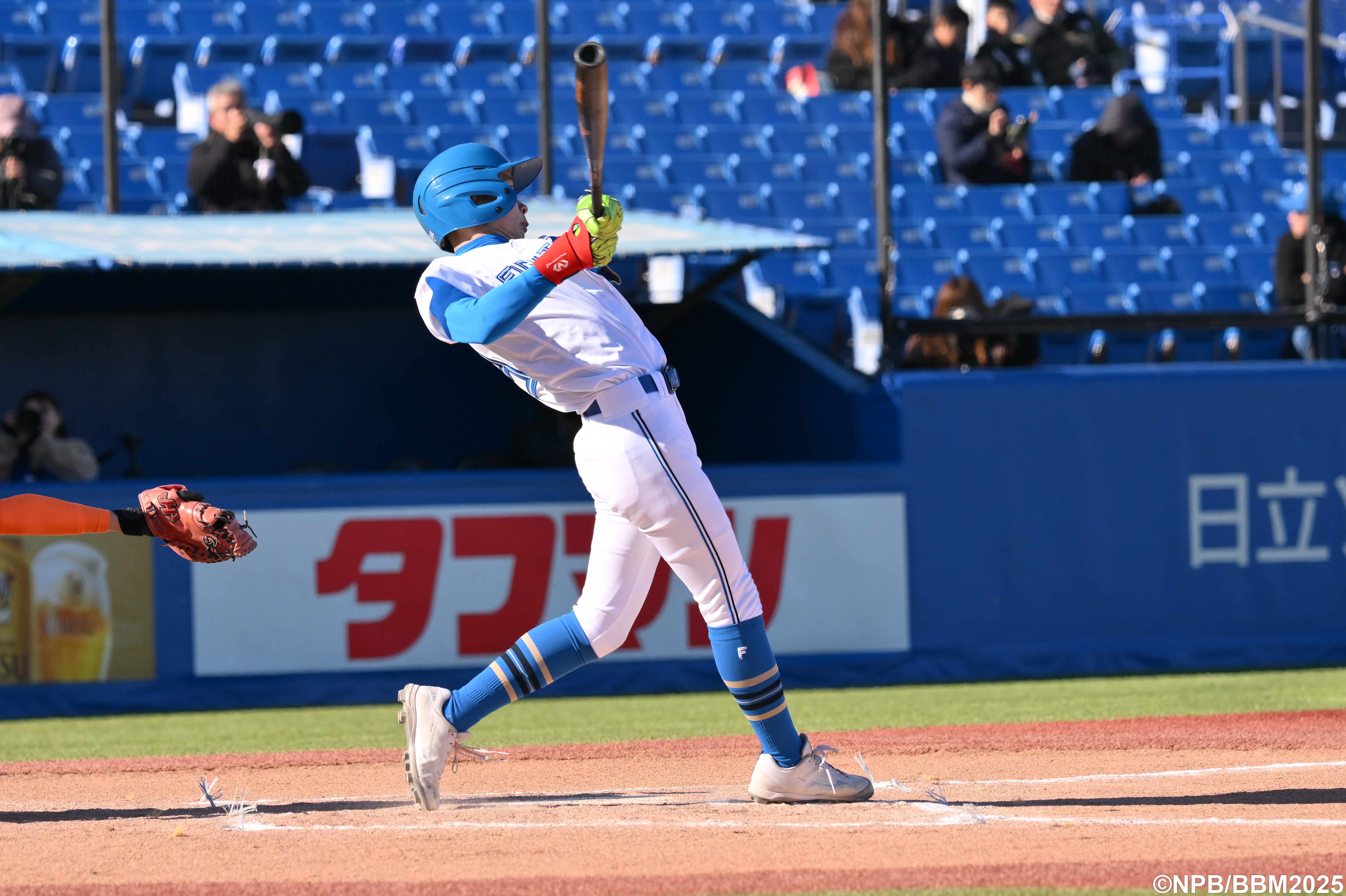 横浜スタジアムにて行われた試合で、ファイターズOBの中村勝監督が率いる、