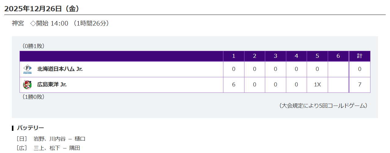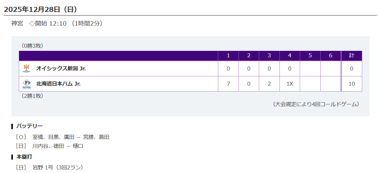 「NPBジュニアトーナメント KONAMI CUP2025」の初戦、